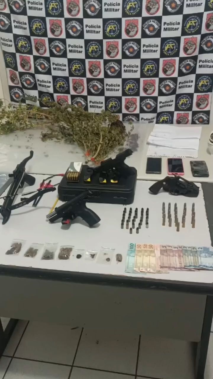 Durante as buscas, foram encontradas três armas de fogo: uma pistola calibre .380, uma pistola 9mm e um revólver calibre .38, todas com munições. Além disso, foram apreendidos carregadores, munições adicionais e uma arma do tipo besta.