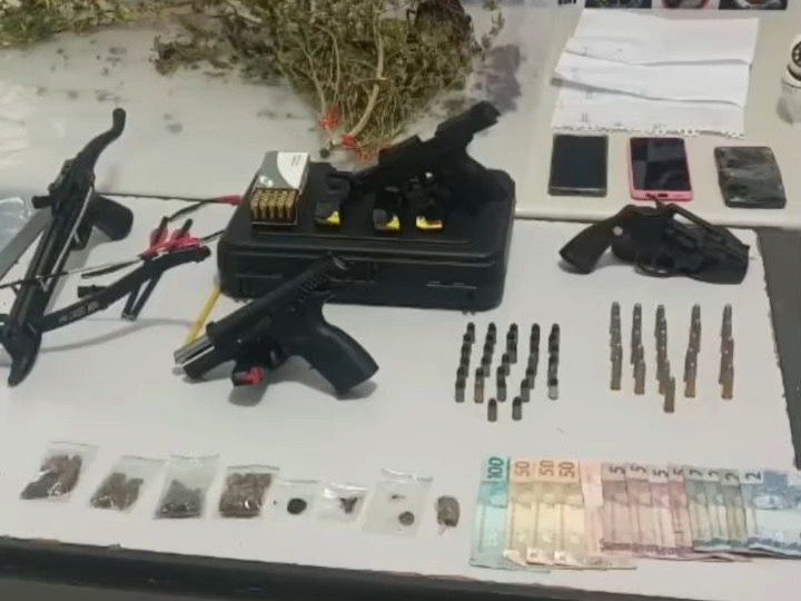 Durante as buscas, foram encontradas três armas de fogo: uma pistola calibre .380, uma pistola 9mm e um revólver calibre .38, todas com munições. Além disso, foram apreendidos carregadores, munições adicionais e uma arma do tipo besta.
