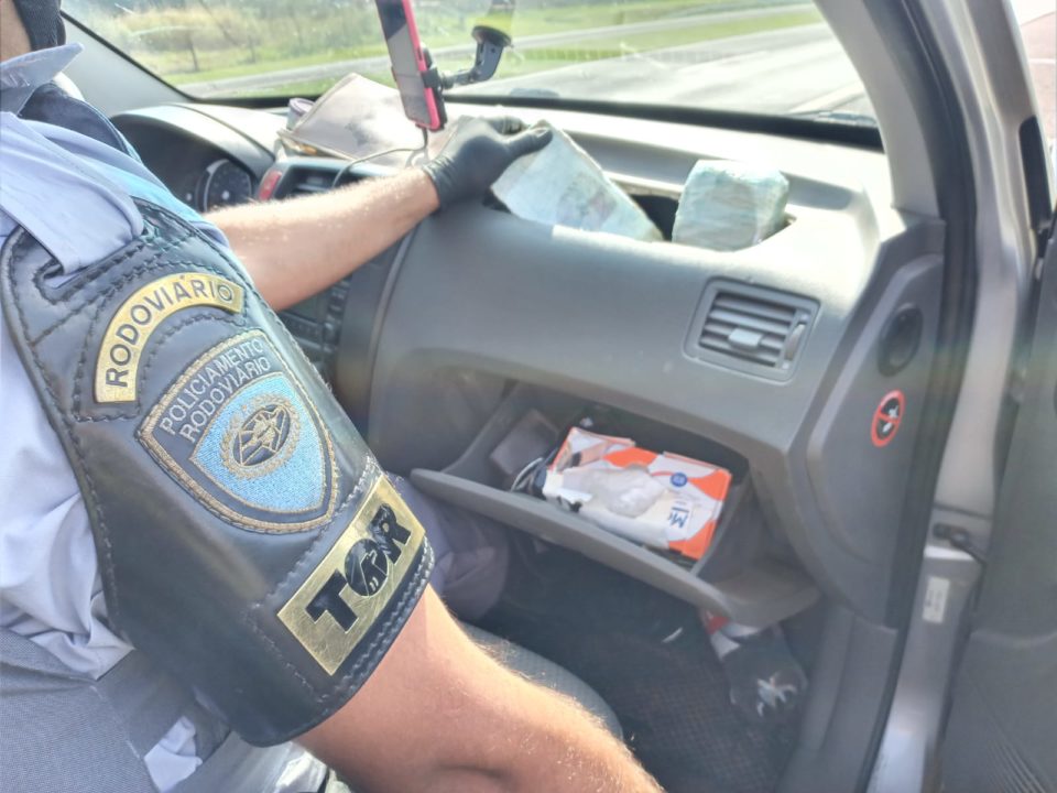 O casal, que ocupava o veículo, foi preso em flagrante e permaneceu à disposição da Justiça.