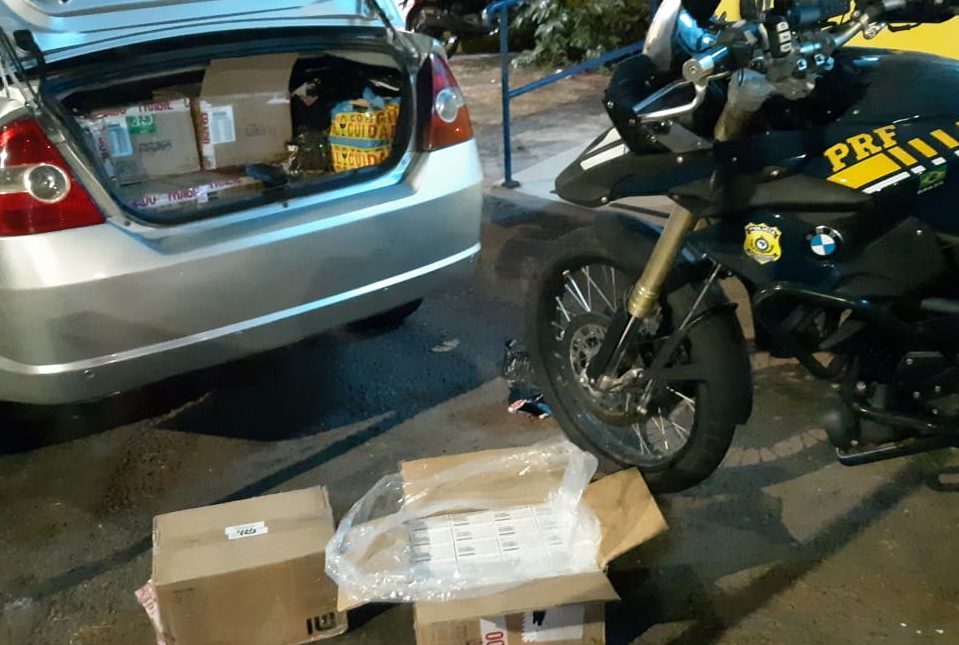 Por volta de 2h, a Polícia Rodoviária Federal (PRF) abordou um veículo, ocupado por um casal. Durante busca veicular, os policiais localizaram 285 celulares sem documentação fiscal, avaliados em mais de R$ 400 mil.