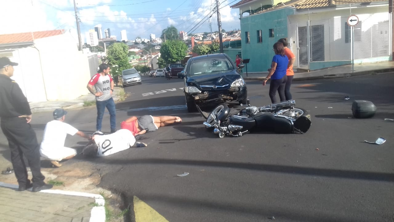 Segundo o Corpo de Bombeiros, que atendeu a ocorrência, carro e motocicleta se chocaram no local. Os ocupantes da moto acabaram indo ao solo e se feriram.