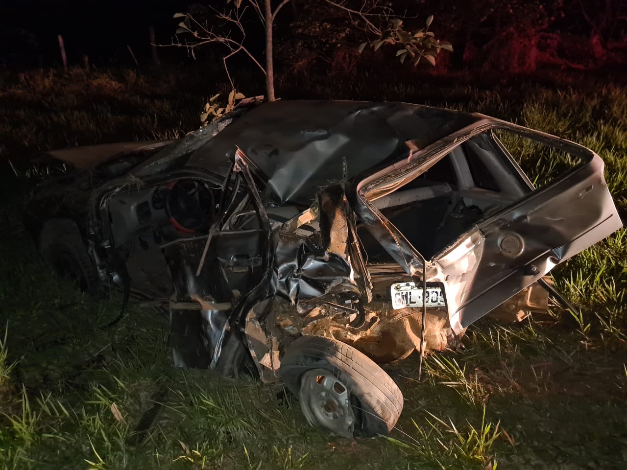 Um veículo ficou destruído após um acidente na noite desta quarta-feira (4), mas o casal que ocupava o carro saiu praticamente ileso do grave acidente.