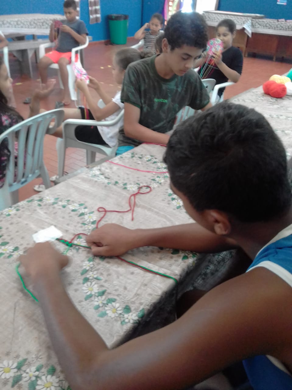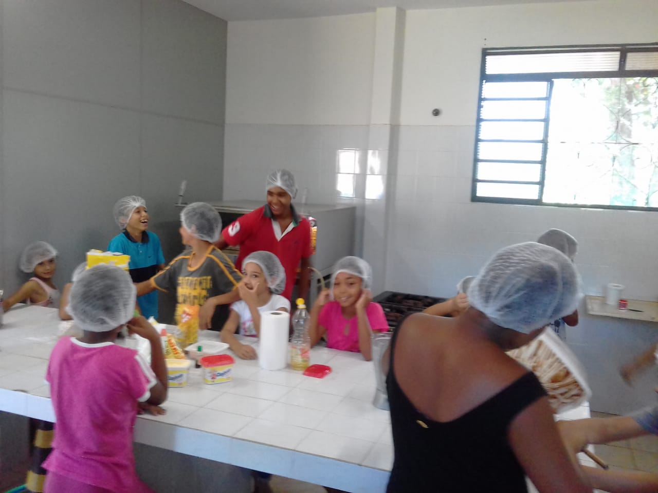 Tiveram também oficinas interessantes, como de culinária, pulseiras no tear e macramê, pintura com giz de cera e massa de modelar, oficinas essas que deixam a garotada animadíssima, e aproveitando o mês de intenso calor, desfrutaram de piscina e cachoeira.