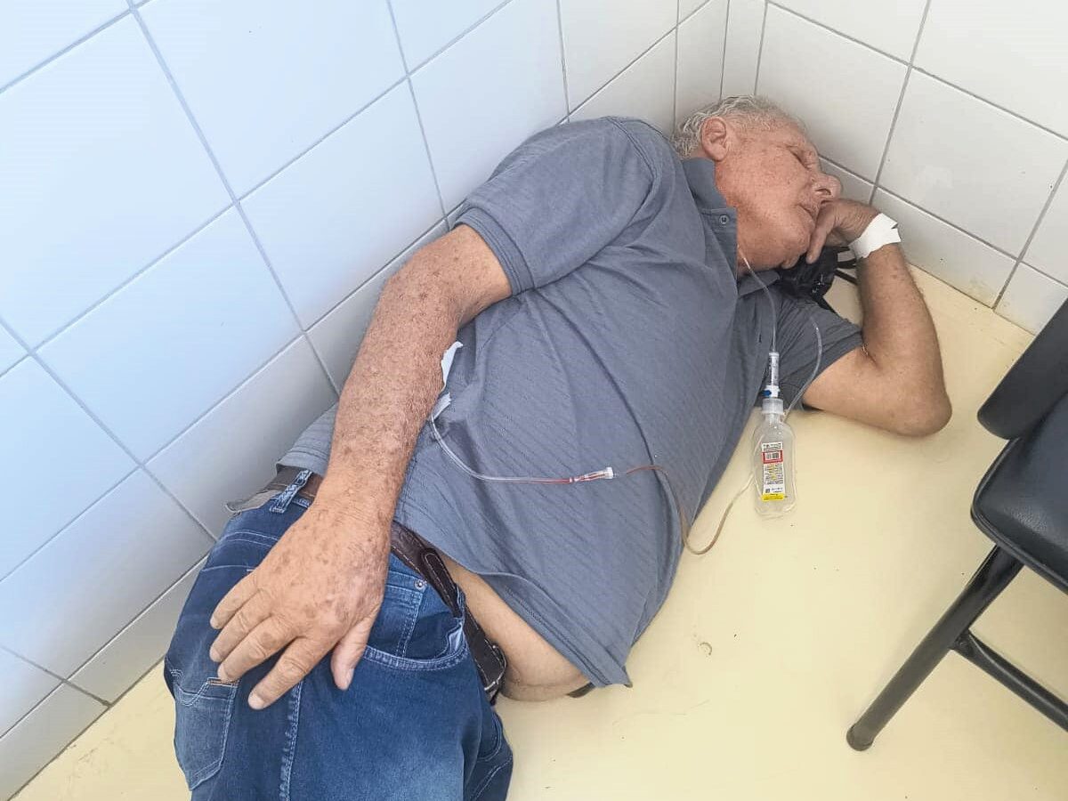 A autora foi identificada como neta do paciente. No texto, ela afirma que o avô chegou à unidade com febre alta e “não aguentava ficar em pé”. “Não tinha uma cadeira para ele sentar, um leito para ele deitar. O jeito foi se render ao chão”, escreveu.