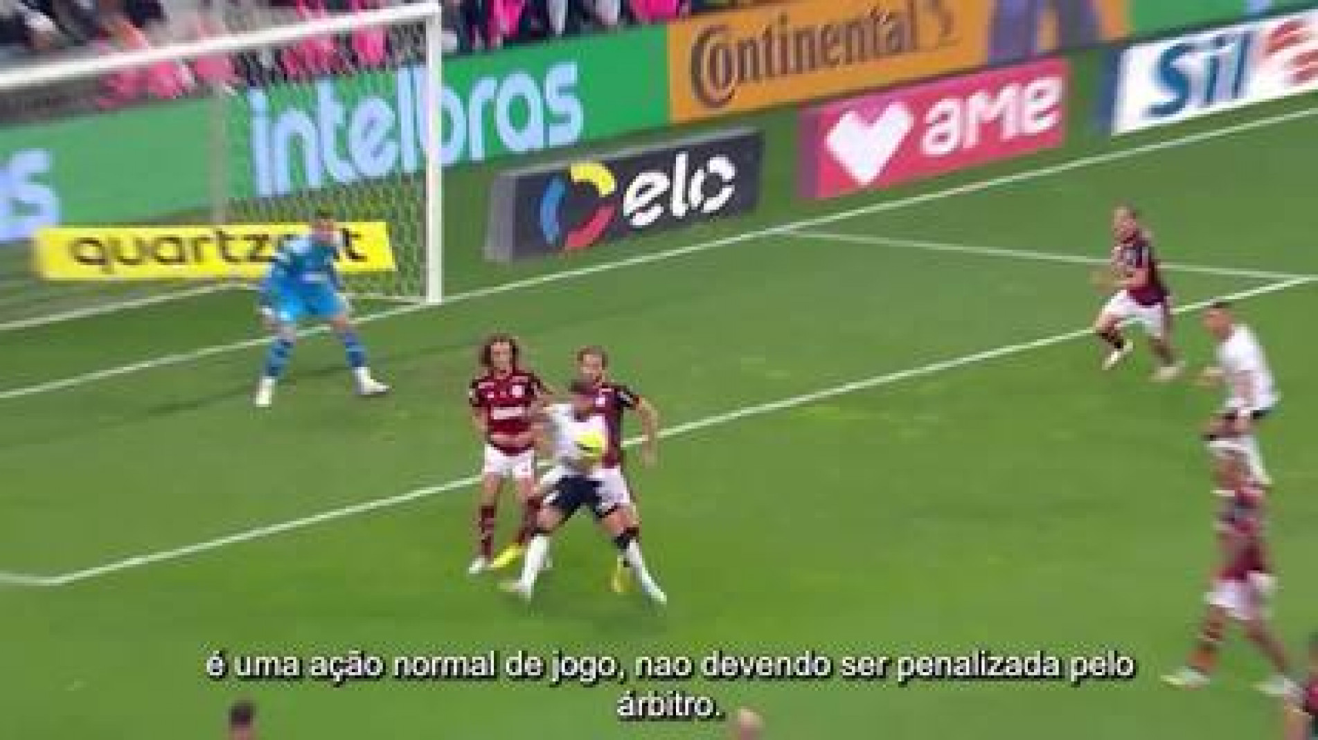 O lance aconteceu aos 36 minutos do segundo tempo. O juiz Bráulio da Silva Machado, que pertence ao quadro da Fifa, não marcou a penalidade na hora nem depois de ouvir a opinião de Rodrigo D’Alonso Ferreira, responsável pelo VAR, que não recomendou que ele revisse o lance no monitor.