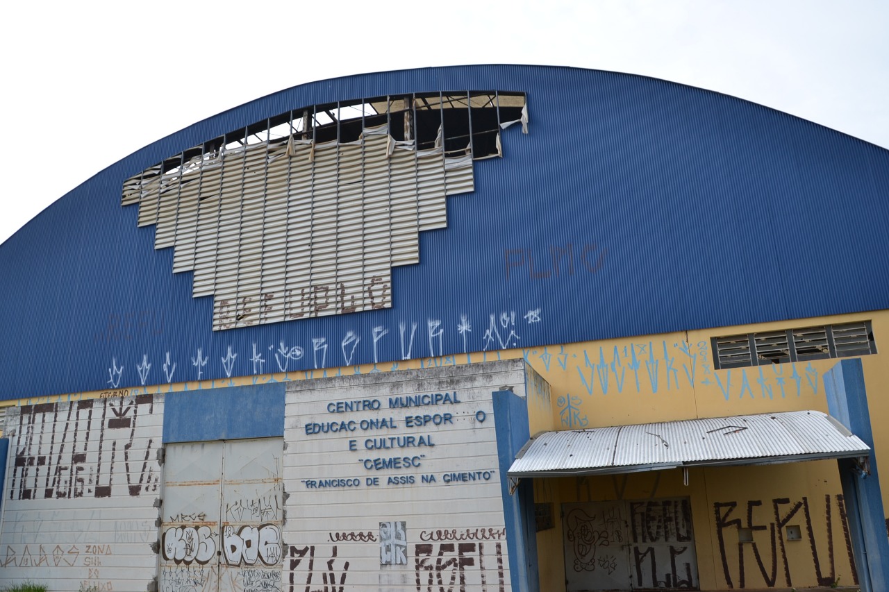 O local está com o portão estourado, vidraças quebradas e todo marcado por pichações. Por ali são inúmeros os atos de vandalismo e sinais de deterioração por falta de manutenção.