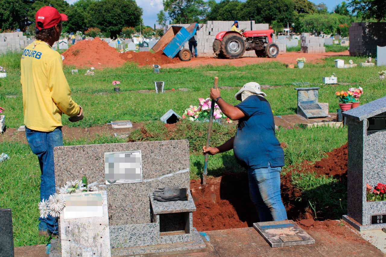 Coveiros trabalham no Cemitério da Saudade de Marília (Foto: Carlos Rodrigues/Marília Notícia)