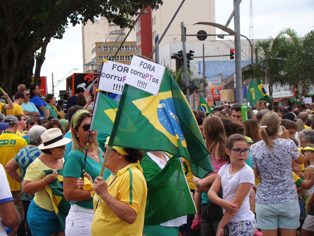 Em Marília foram entoados coros como “O PT roubou” e “Fora PT, fora Cunha, fora Renan”, além do Hino Nacional.