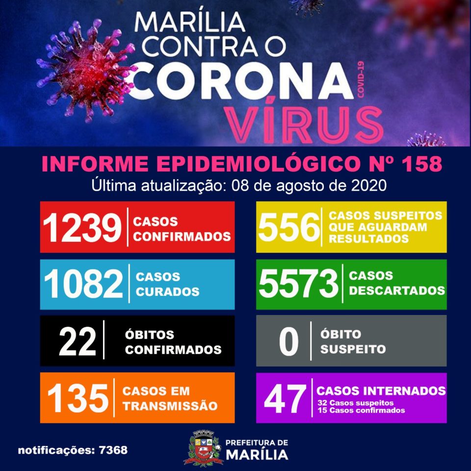 O boletim epidemiológico divulgado pela Prefeitura de Marília neste sábado (8) mostra que pouco mais de 87% dos casos confirmados de Covid-19 na cidade já são considerados curados.