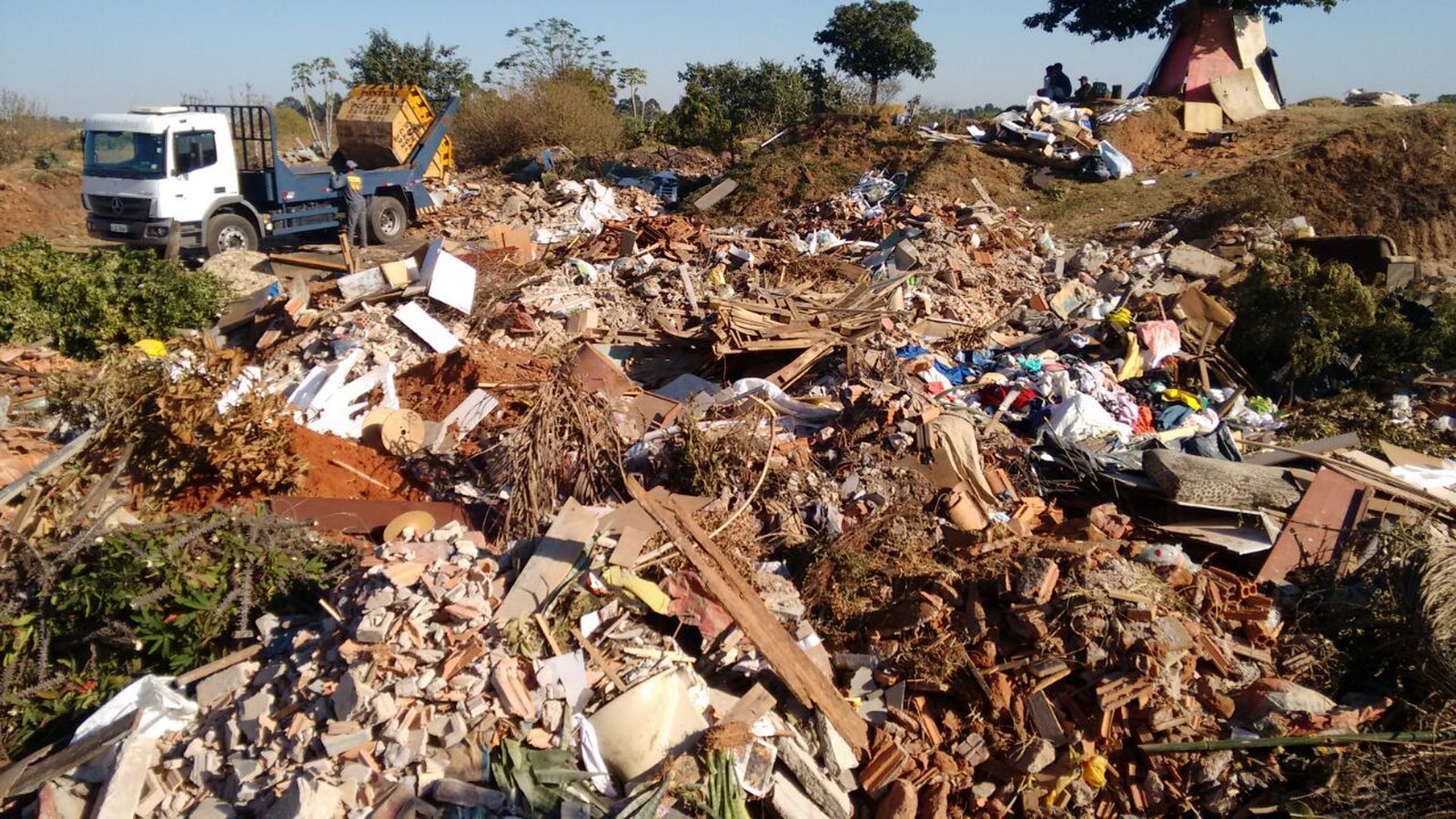 Além de resíduo bruto da construção civil – entulho sem triagem – também havia lixo doméstico, móveis velhos e restos de poda na área localizada no prolongamento da avenida Brasil. O caso é considerado grave.
