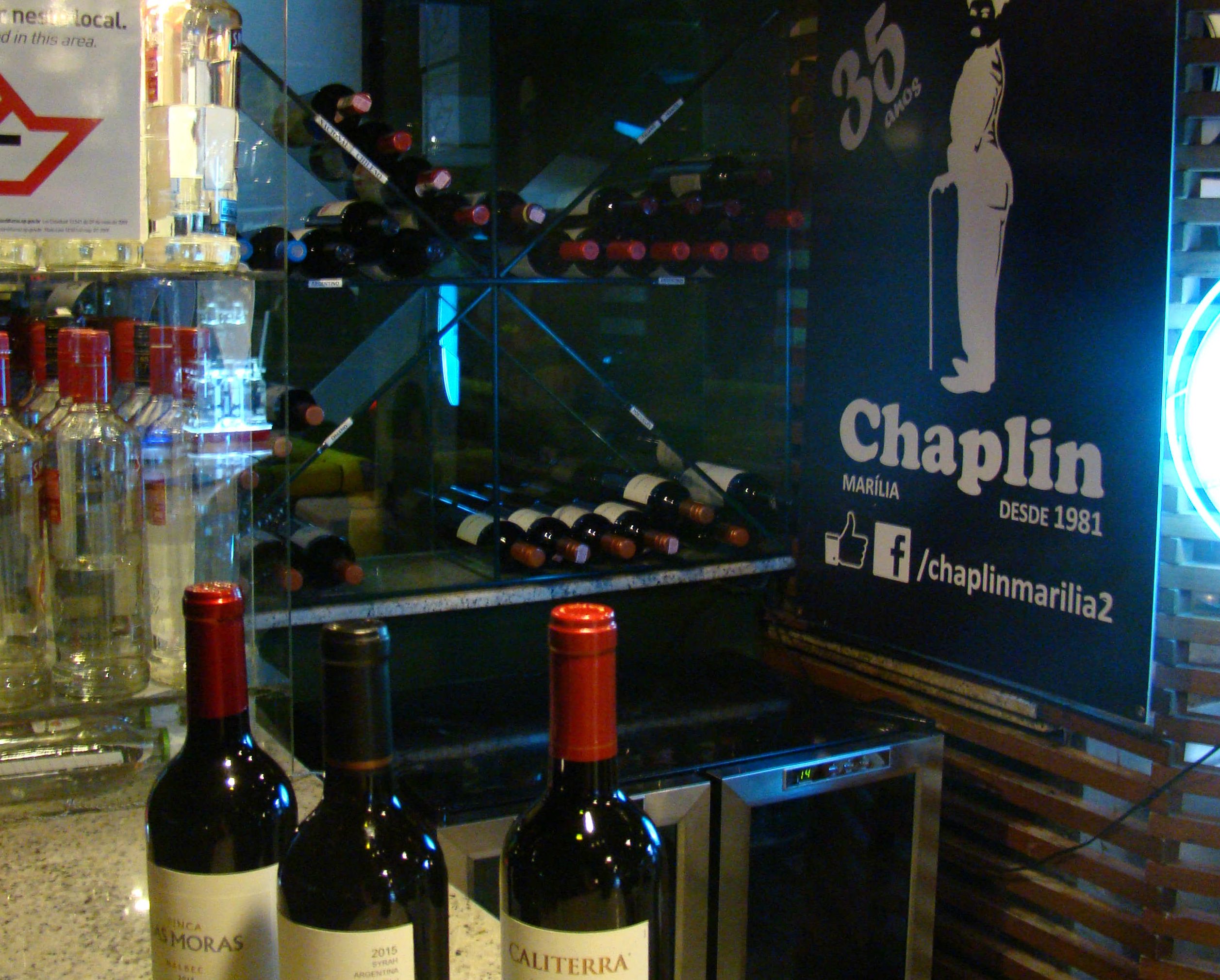 Pensando na qualidade de atendimento aos clientes que apreciam um bom vinho, o Chaplin saiu na frente mais uma vez e adquiriu recentemente uma adega, que mantém as bebidas na temperatura perfeita para o consumo.