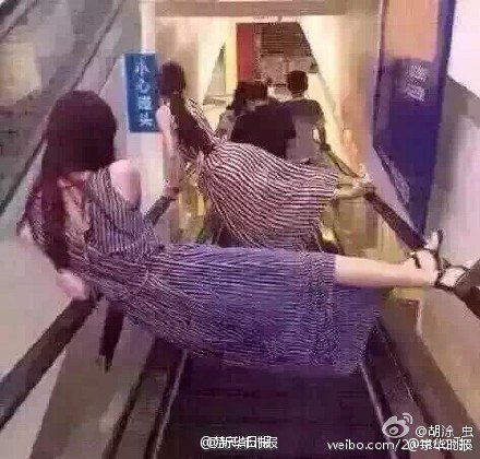 Chineses se reinventam ao usar escada rolante