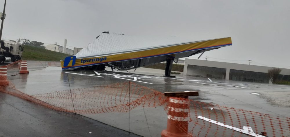 A chuva que atingiu Marília na tarde desta terça-feira (28) causou a queda da estrutura de cobertura de um posto de combustíveis que está sendo instalado no acesso da avenida Esmeraldas para a Rodovia Comandante João Ribeiro de Barros (SP-294), sentido Marília a Vera Cruz.