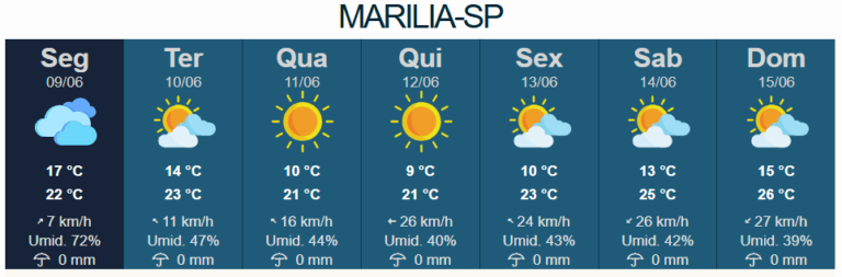 Durante o dia, a temperatura não deve passar dos 20°C, com previsão de queda nas mínimas em uma semana fria, chegando até os 9°C entre quarta (11) e sexta-feira (13). A expectativa é que os termômetros voltem a subir no próximo fim de semana.