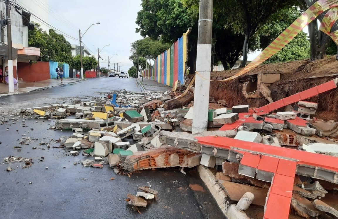 Próximo ao horário de saída das crianças, o muro traseiro da Escola Municipal Sítio do Pica-Pau Amarelo desabou, no bairro Califórnia.