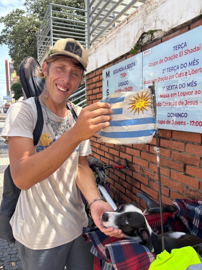 O que não foi levado, faz questão de destacar, foram seus bens mais valiosos. “Fiquei com o violão, a vida e a Chica, o mais importante que eu tinha”, afirma. A cadela, que vivia em situação de abandono no Rio Grande do Sul, hoje divide com ele, a muitos quilômetros de distância, a jornada como cicloviajante.