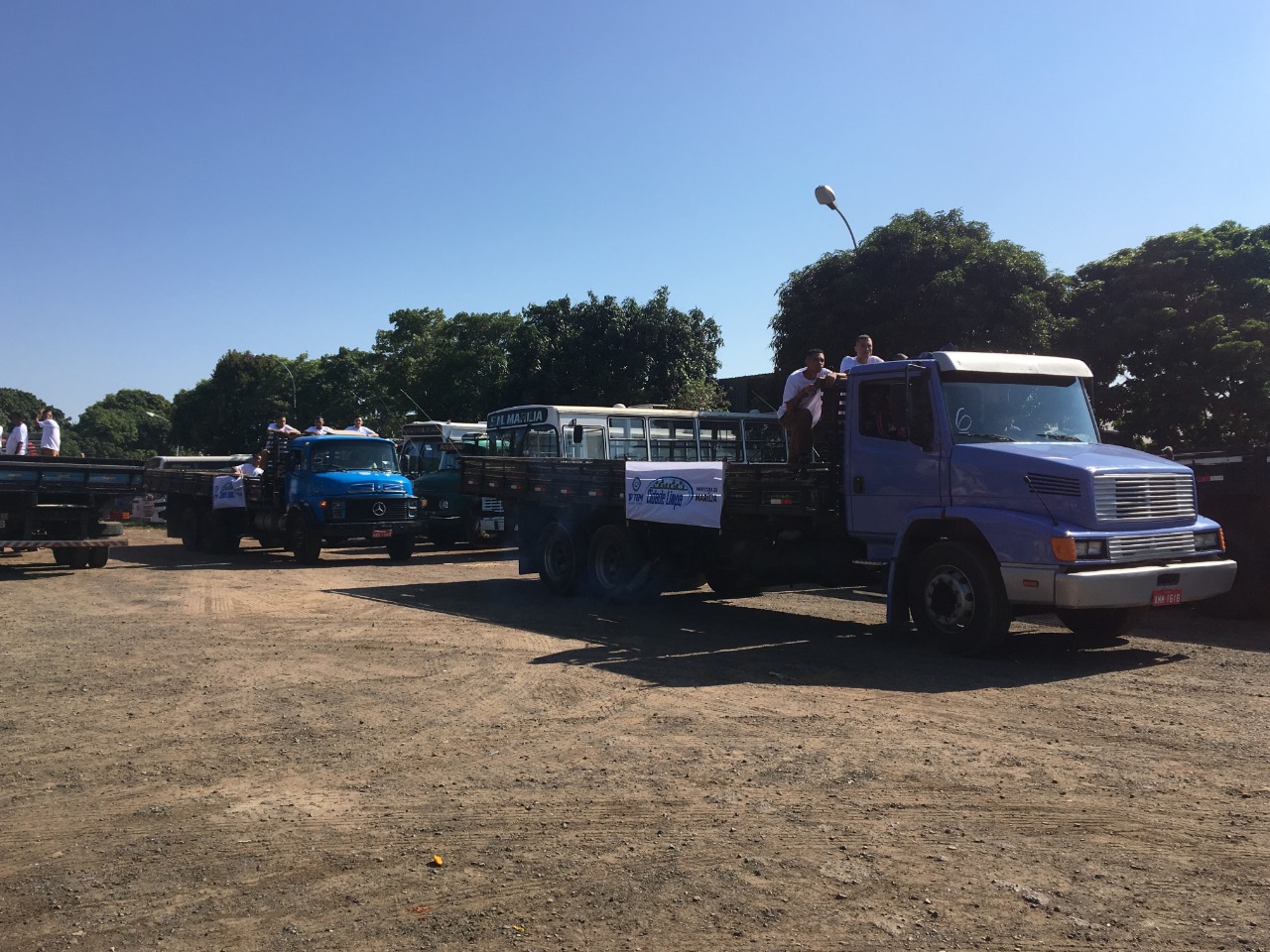 O secretário municipal de Meio Ambiente e Limpeza Pública, Vanderlei Dolce, acompanhou nas primeiras horas da manhã a saída dos caminhões da garagem da Prefeitura, na avenida República. São 22 veículos à disposição, sendo dois de reserva.