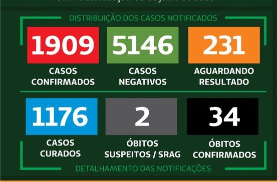 Segundo boletim epidemiológico, Bauru contabiliza atualmente 1.909 testes confirmados de coronavírus, sendo 34 mortes. Há ainda 231 casos suspeitos, aguardando resultado de exames e duas mortes sob investigação. Um total de 1.176 pessoas já se curaram da doença.