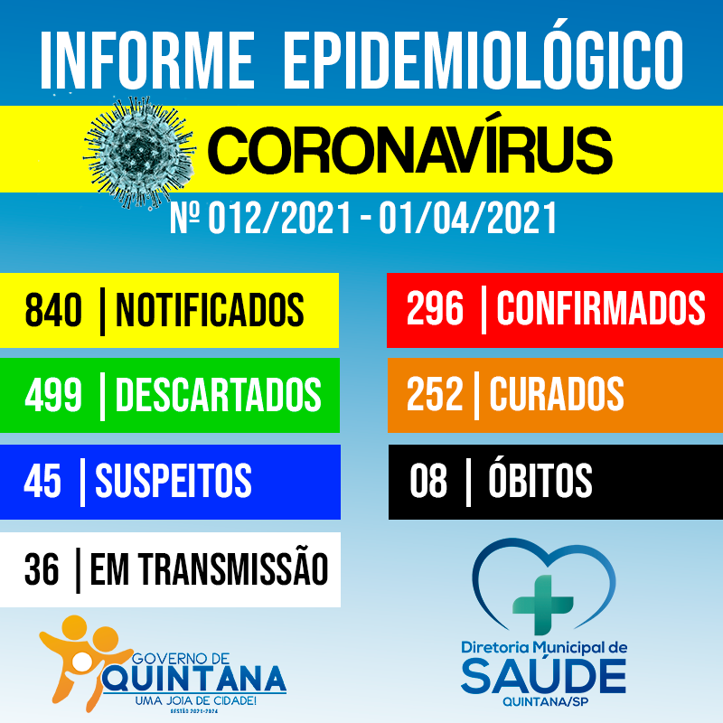 Quintana tem 296 casos positivos, sendo oito óbitos e 252 curados.