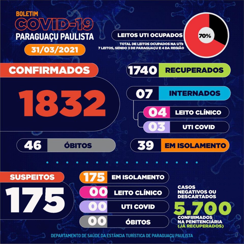 A Prefeitura de Paraguaçu Paulista (distante 78 quilômetros de Marília) informou mais uma morte em decorrência da Covid-19 nesta quarta-feira. Não foram divulgados detalhes sobre a vítima.