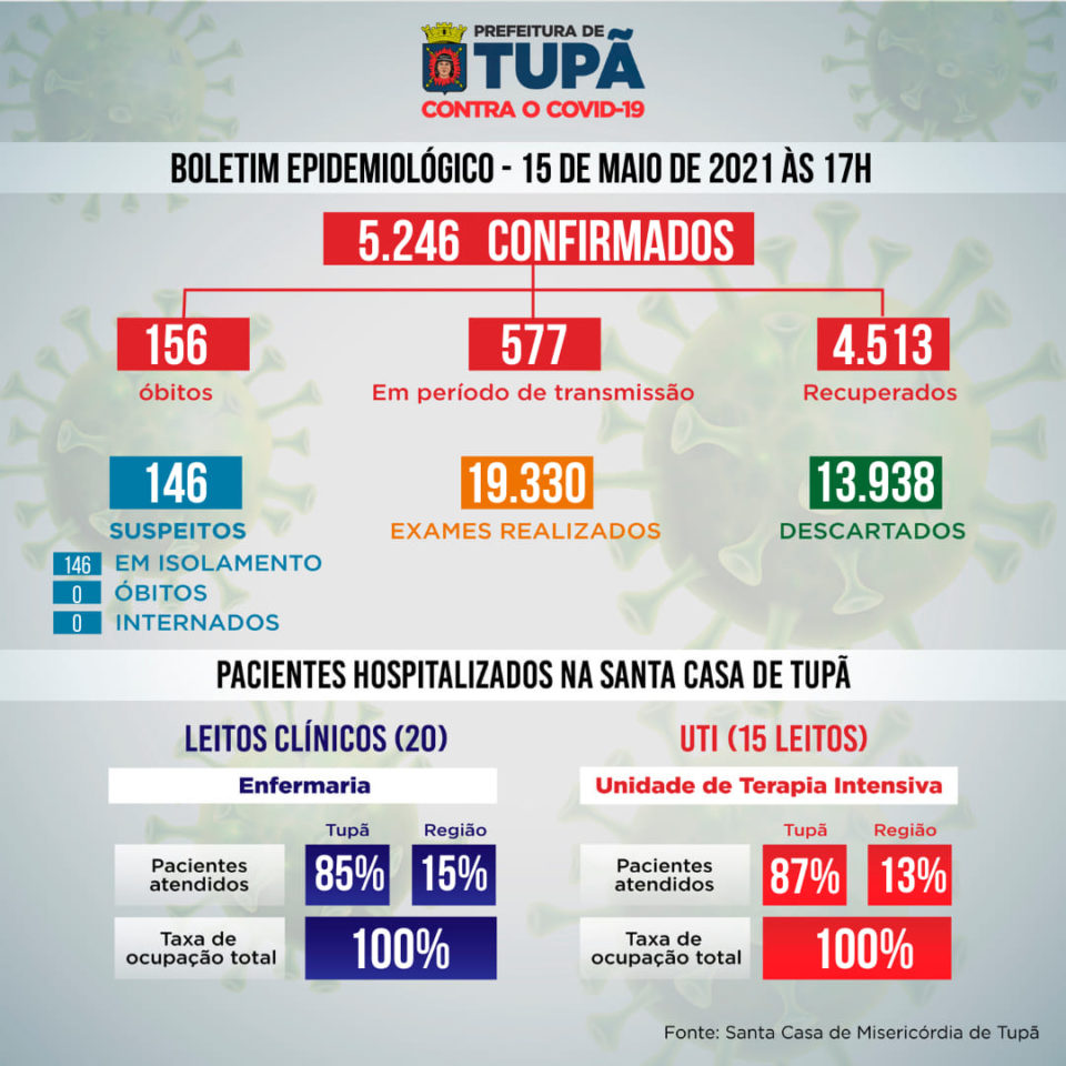 Tupã registra 5.246 testes confirmados, sendo 4.513 recuperados e 156 mortes.