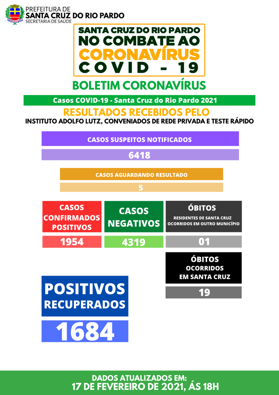 A Prefeitura de Santa Cruz do Rio Pardo (distante 120 quilômetros de Marília) informou nesta quarta-feira a 20ª morte provocada pela Covid-19.