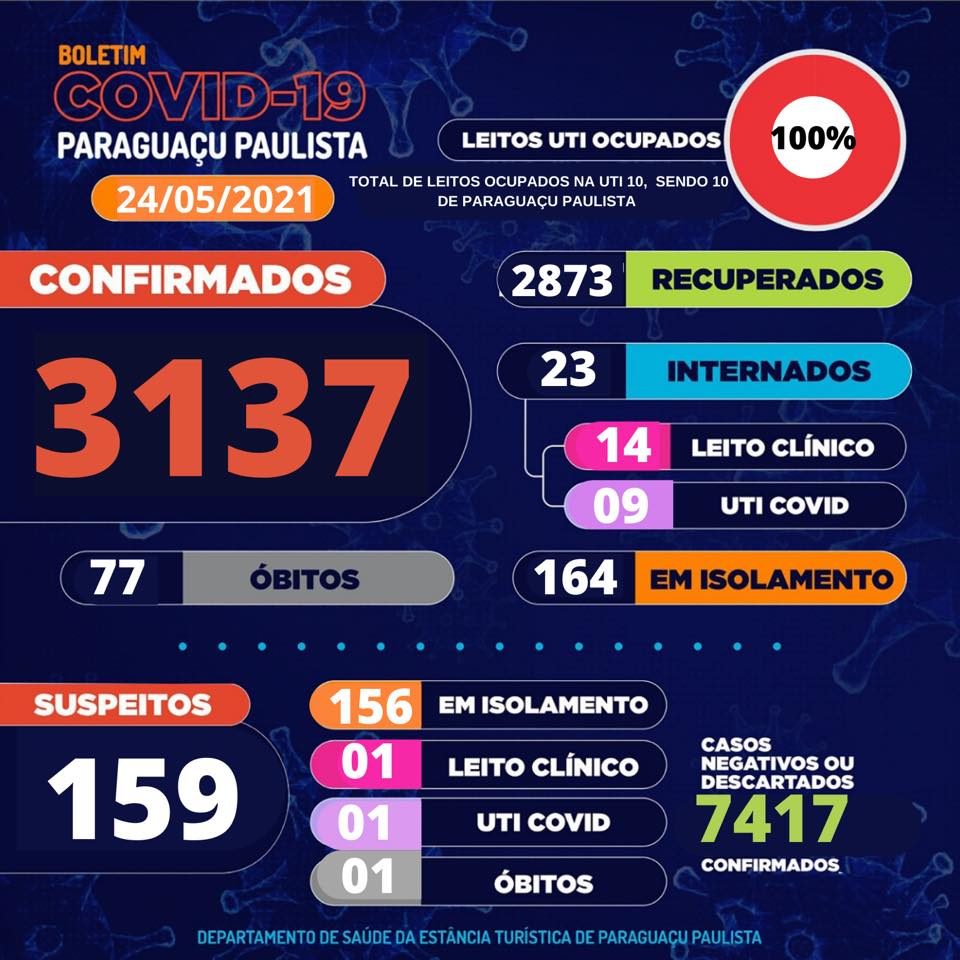 A cidade registra 3.137 casos confirmados, dos quais são 2.873 curados e 77 óbitos.