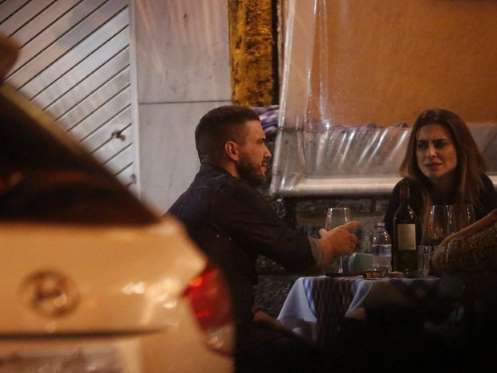 Cleo Pires e André Marques trocam carinhos em bar