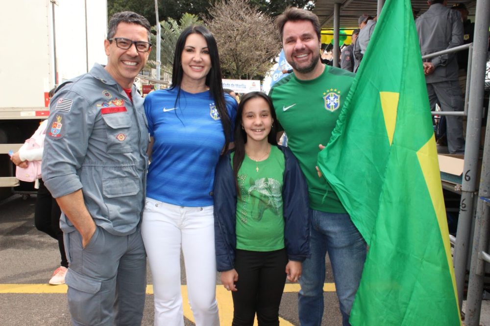 O industrial Stênio Dedemo com a esposa Ana Paula, a filha Manuela e o amigo Major Góes Júnior no desfile da independência