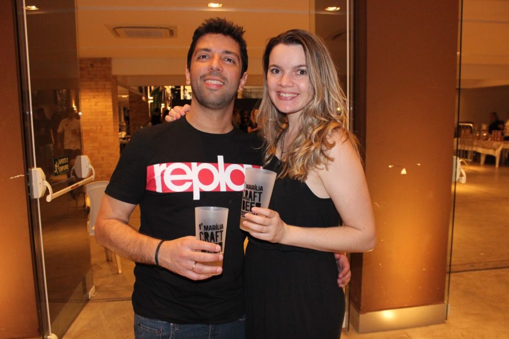 Bruno Vinicius Silva e a noiva Aline Tayette elogiaram a organização do 1o. Marília Craft Beer
