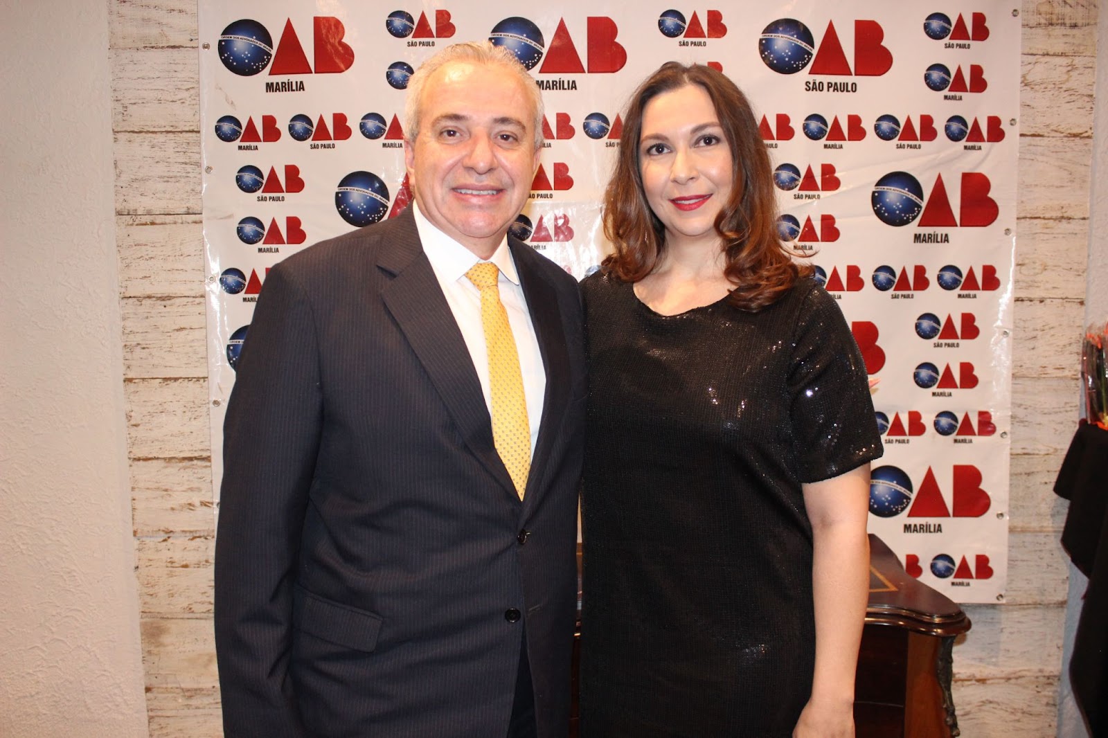 O delegado seccional de polícia Dr. Wilson Frazão e a esposa Michele no jantar da OAB Marília