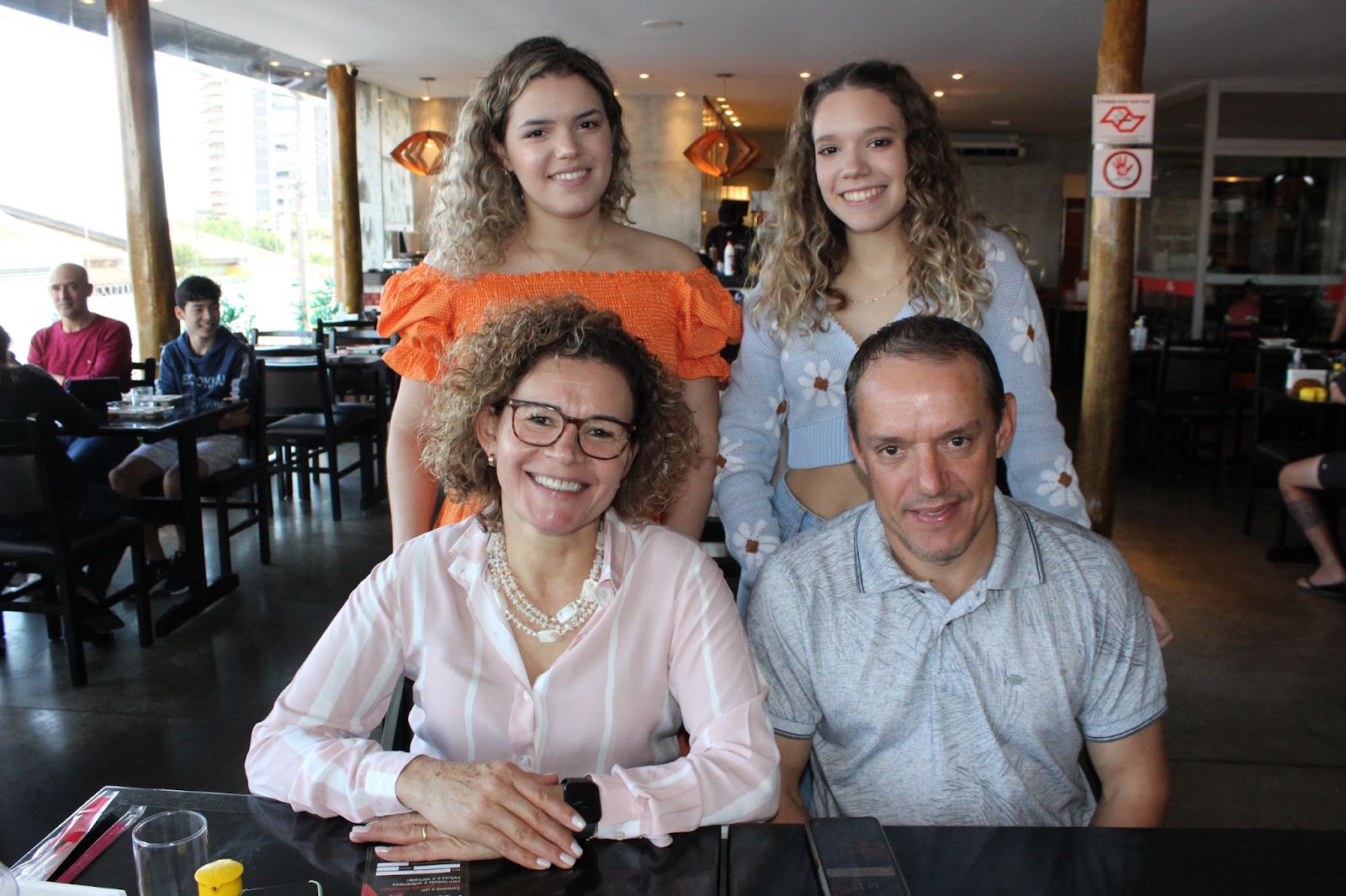 Marineves Barros Souza na companhia do esposo Denilson e as filhas Isabela e Isadora