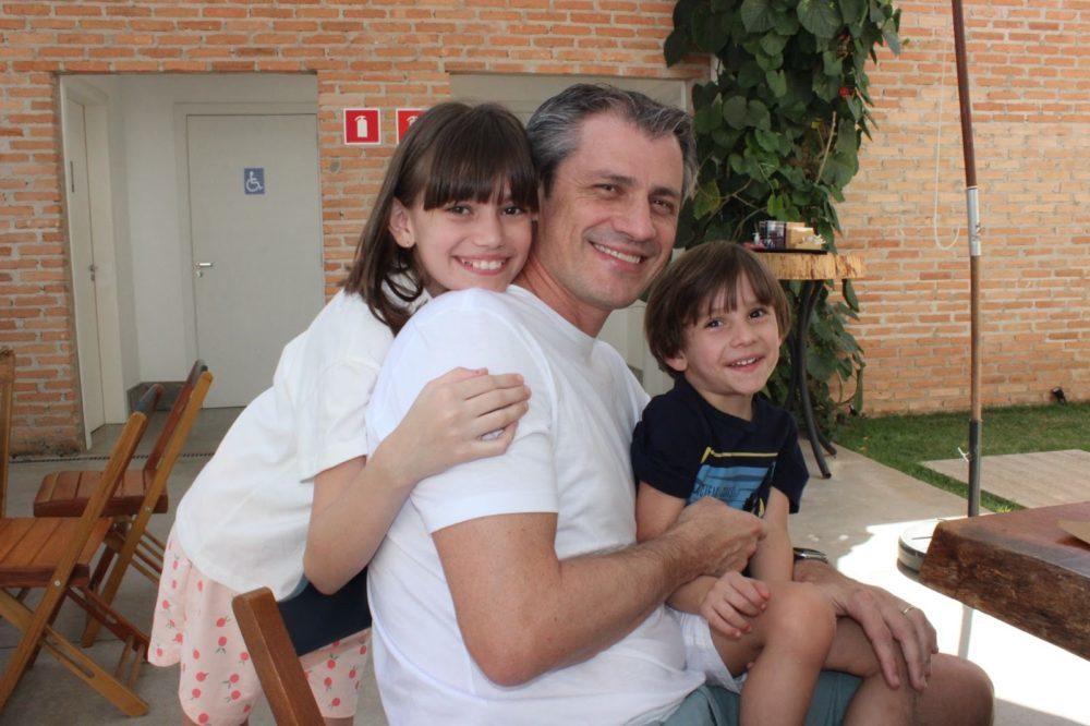 Jean Caetano no maior chamego com os filhos Laura e Benjamin