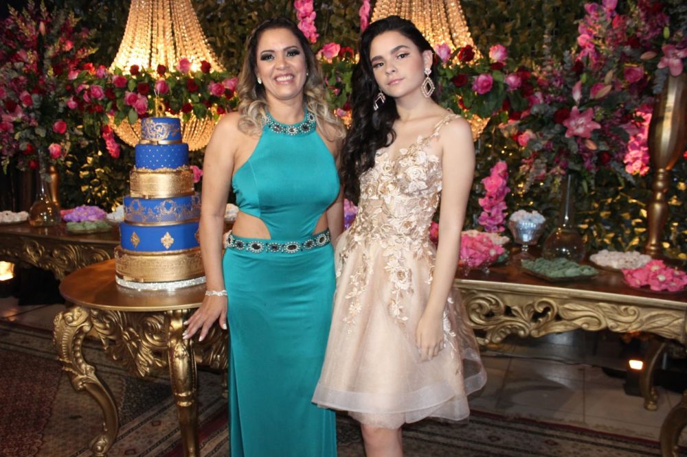 Marcela Moreira posando ao lado da mãe Rose na sua linda festa de debutante