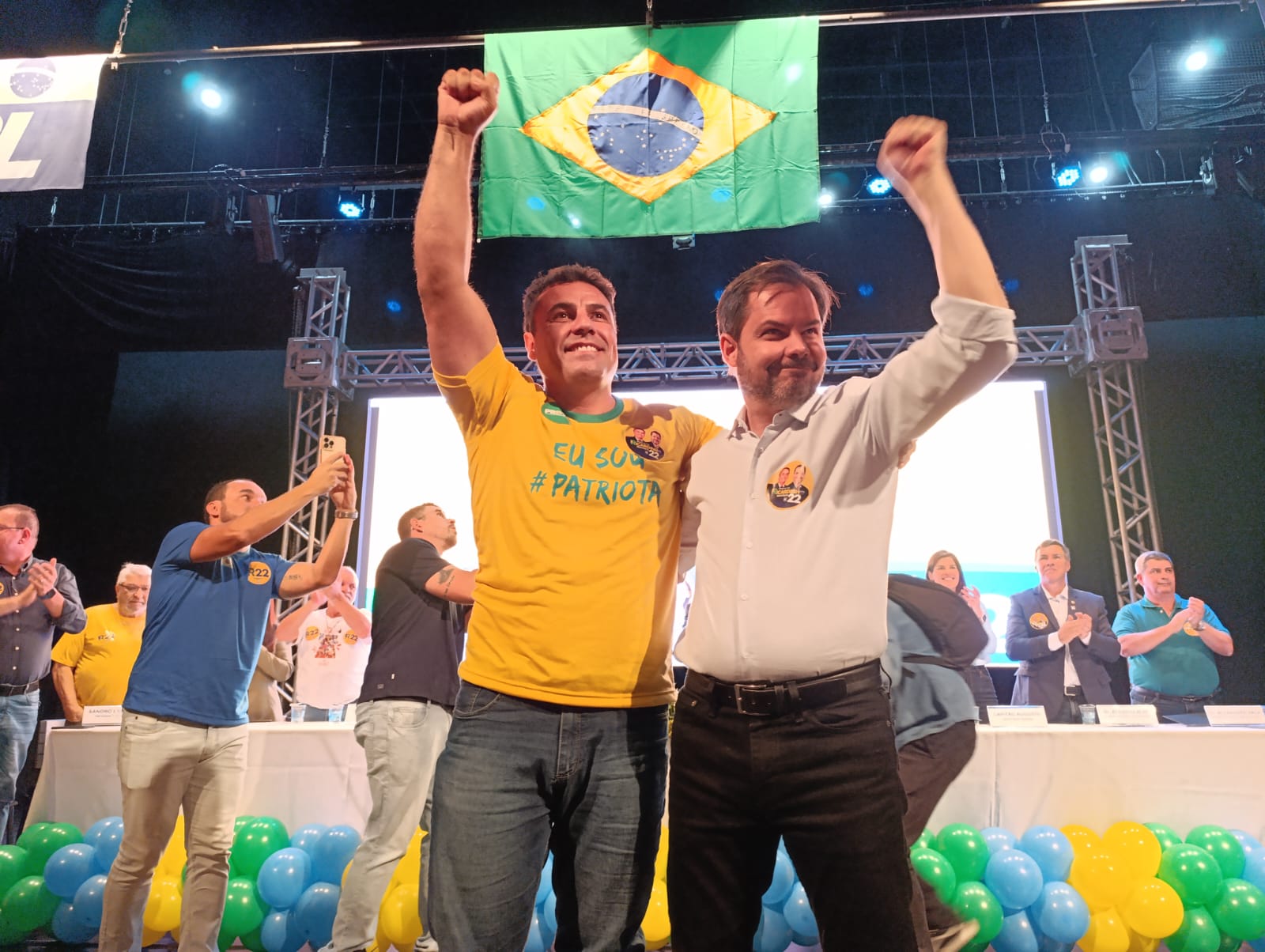 Na plateia, sentados nas primeiras fileiras, cerca de 50 candidatos à Câmara Municipal escutaram a palavra de “confiança” do também concorrente ao cargo que já exerceu por três legislaturas, Wilson Damasceno (PL).
