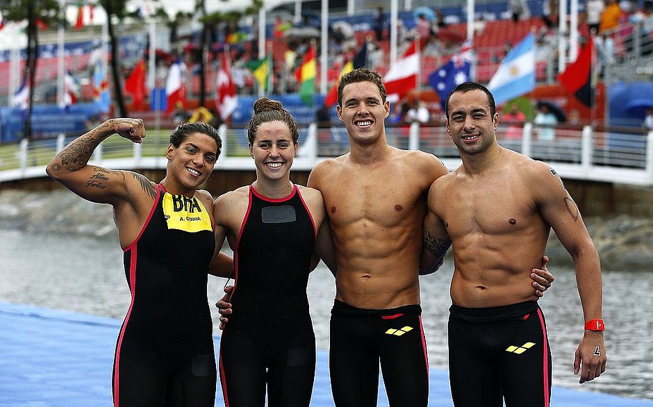 O País completou a prova do revezamento misto em 54min24s5, mais de 25 segundos atrás de Alemanha (ouro), Itália (prata) e Estados Unidos (bronze). A prova foi disputada na baía de Yeosu, na noite desta quarta-feira, pelo horário do Brasil – manhã de quinta na Coreia do Sul. No regulamento da disputa, cada um dos quatro nadadores nadou um percurso de 1.250m, totalizando cinco quilômetros.