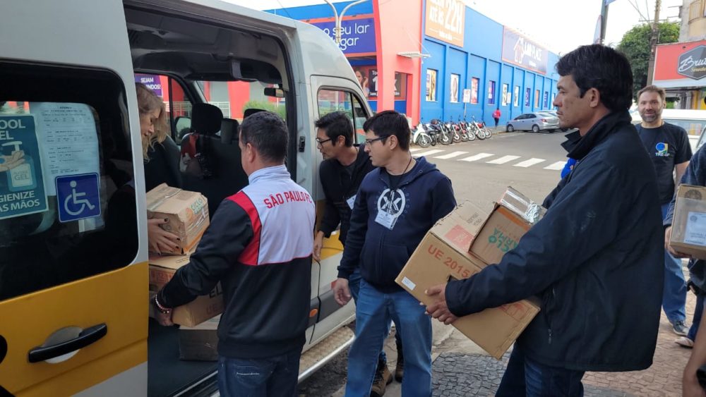 As peruas e vans das secretarias municipais da Educação e da Saúde, que transportaram os equipamentos, encostaram no cartório pouco antes das 8h.