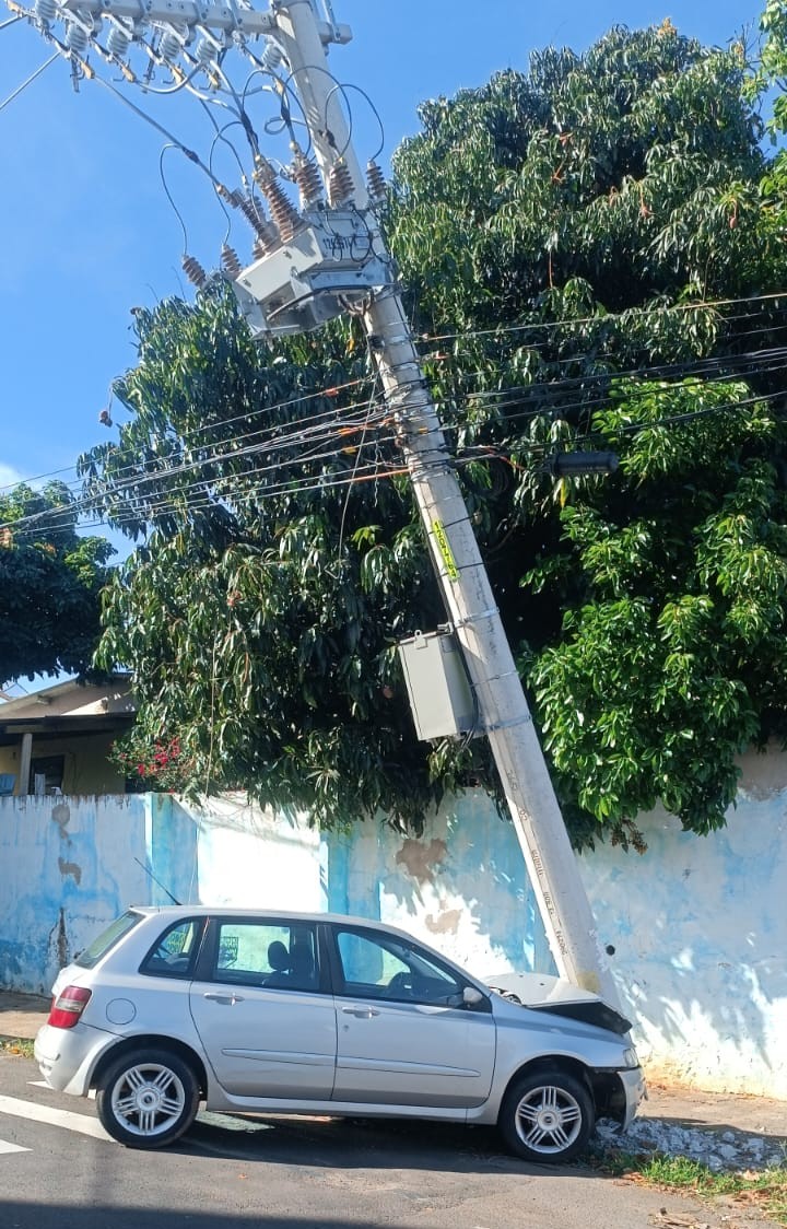 Com ‘carro emprestado’, motorista destrói poste na zona oeste de Marília