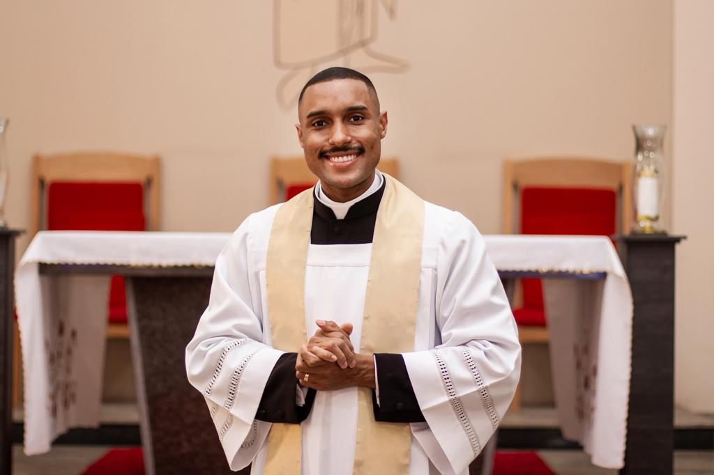 Padre Tiago – Não sofri nenhum preconceito explícito, contudo, sempre estudei em escola particular e sempre fui o único negro da turma. O único negro que fazia curso de línguas da minha turma. Isso em tudo, mas nunca foi um empecilho. Sempre gostei de estar à frente das coisas, de ajudar. Não sei se não sentia ou se fingia que não via, mas nunca tive problema com isso.