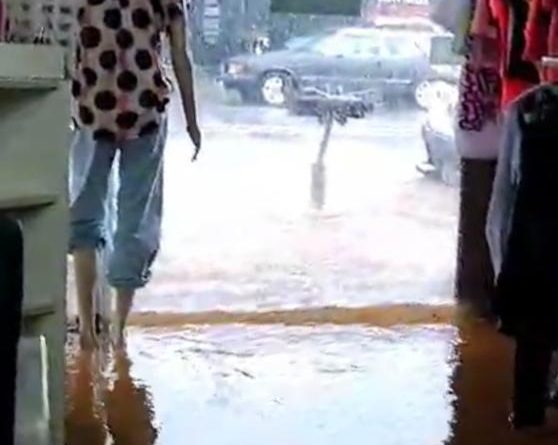 O comerciante Fábio Izidoro também sofre com as chuvas. Ele chegou a mudar a loja de lugar, mas ainda é atingido pelas chuvas. Nesta tarde, ele conseguiu impedir que a água entrasse no estabelecimento, mas nem sempre tem essa sorte.