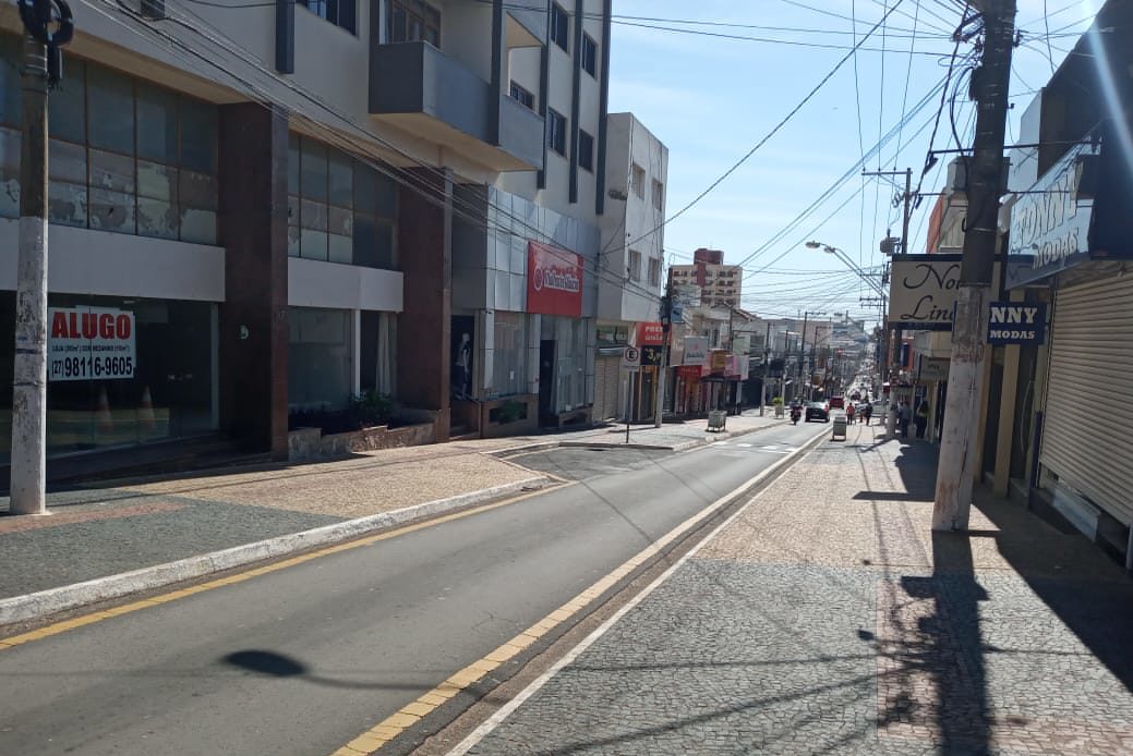 Centro comercial fechado na rua Nove de Julho, com a avenida Tancredo Neves (Foto: Carlos Rodrigues/Marília Notícia)