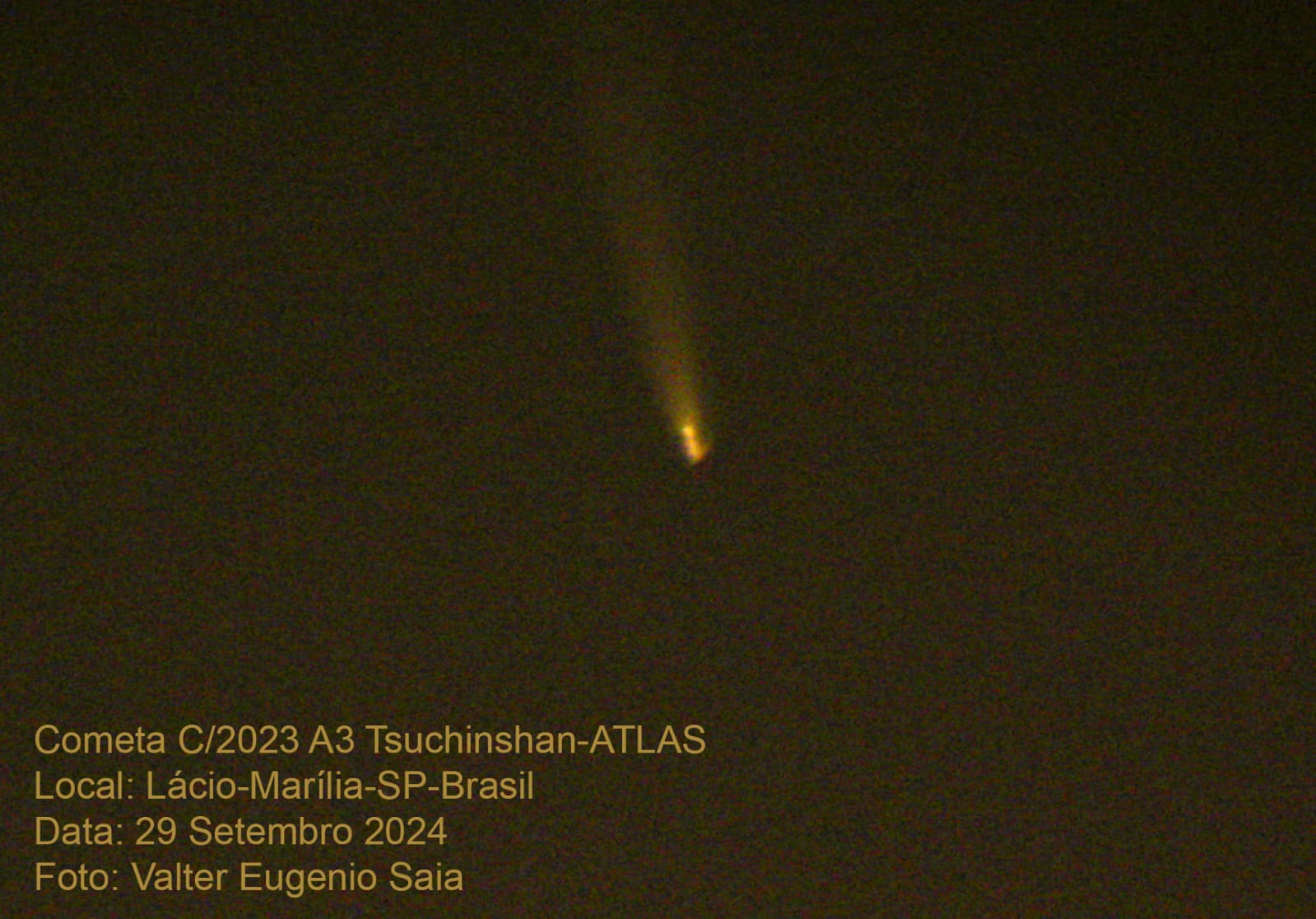Um registro raro e de qualidade, na madrugada deste domingo (29), colocou Marília no mapa da observação astronômica mundial. O zootecnista, ambientalista e astrônomo amador Valter Eugenio Saia registrou imagens impressionantes do Cometa C/2023 A3 (Tsuchinshan-Atlas), popularmente conhecido como o “cometa do século.”