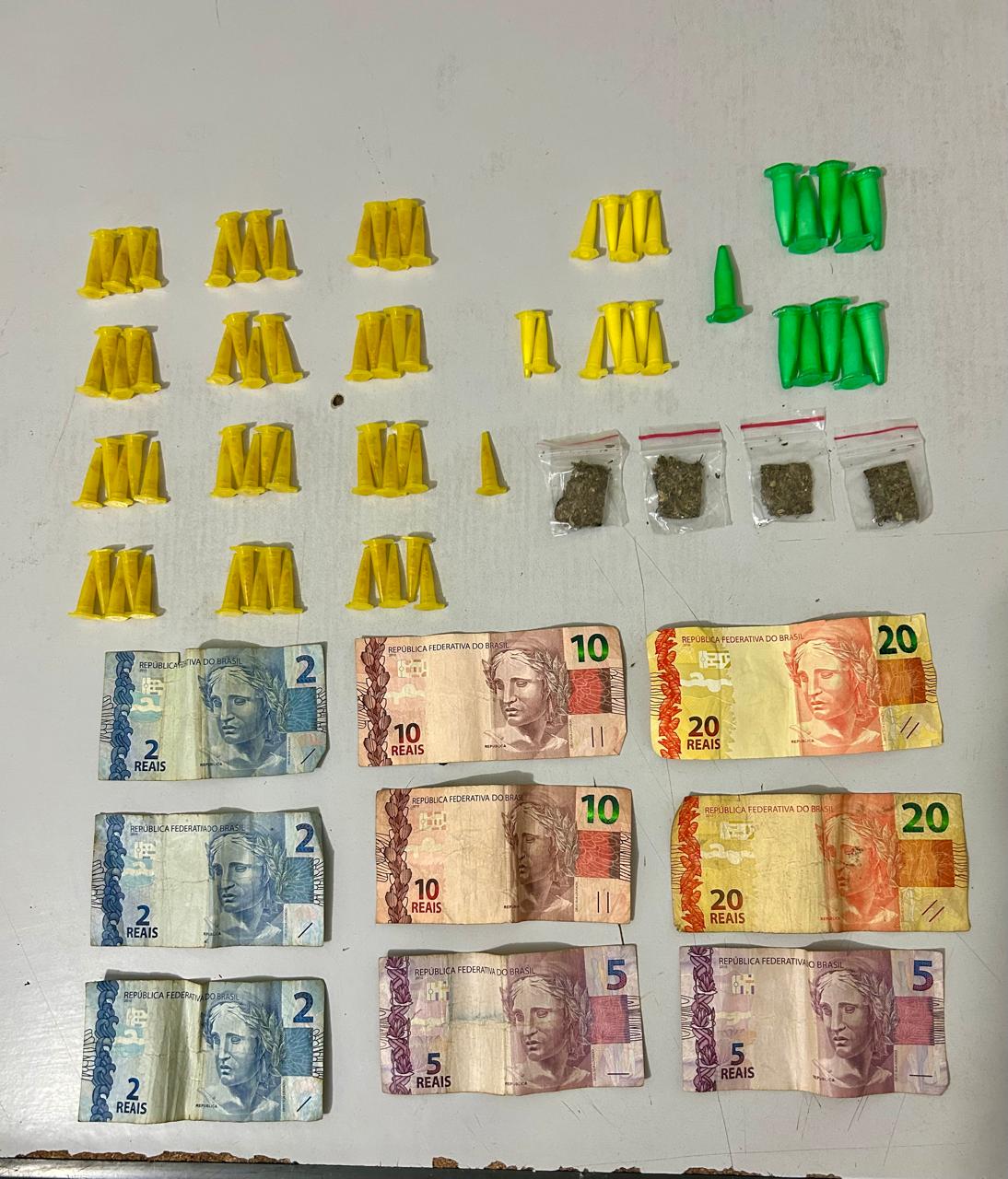 De acordo com informações da PM, os policiais suspeitaram do adolescente, que estava segurando uma sacola plástica. Ao revistarem a sacola, os militares encontraram 23 pinos com cocaína, quatro porções de maconha e 61 pinos com crack, além de R$ 76.