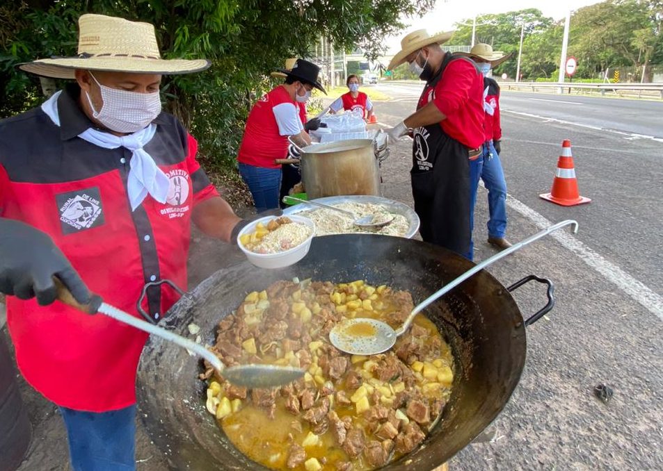 Os integrantes começaram a cozinhar por volta de 5h e contaram com o apoio da Polícia Rodoviária Estadual (PRE), que reservou um local à beira da rodovia.