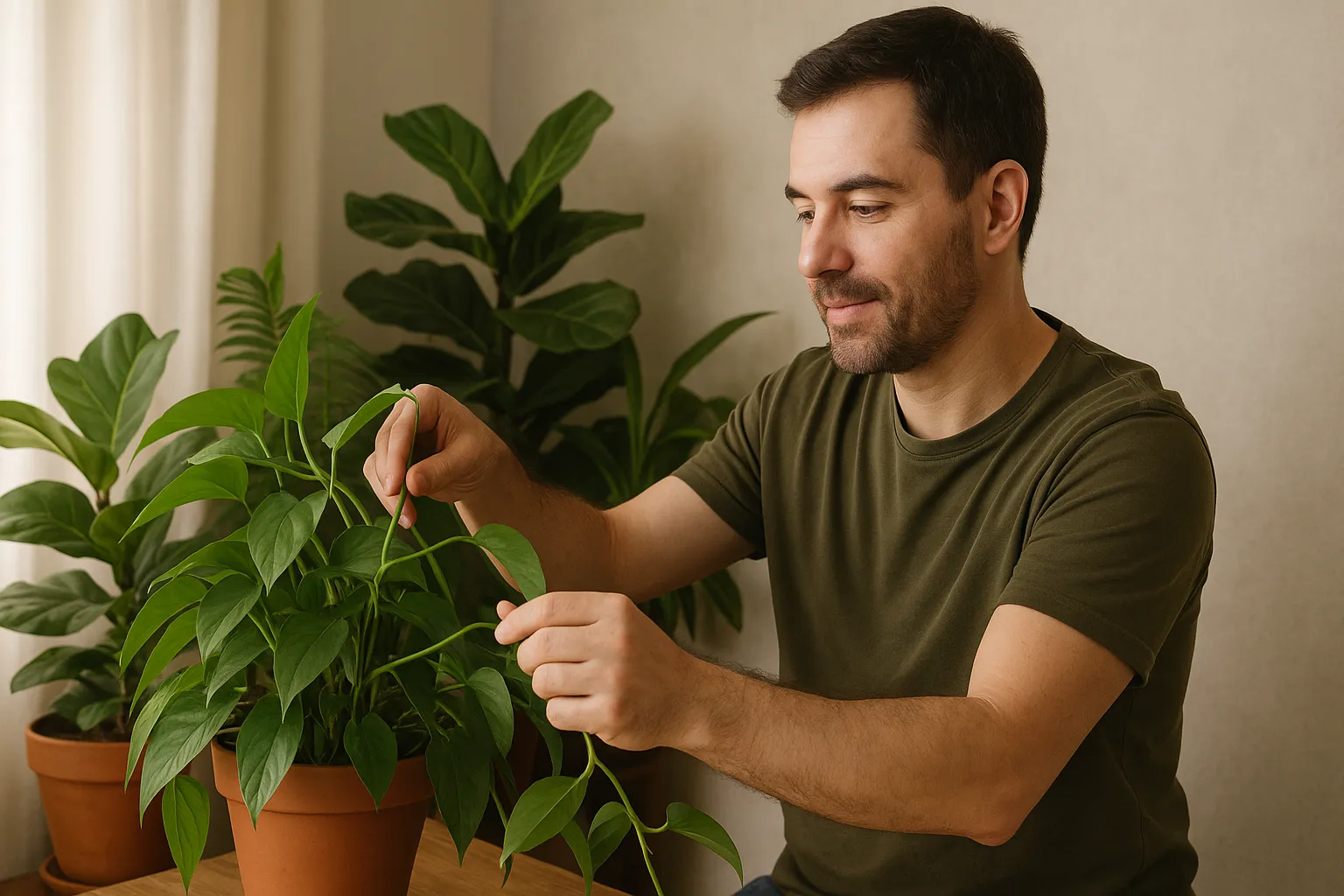 Muitas plantas, como a jiboia, a samambaia ou a peperômia, se beneficiam mais de uma reorganização do que de uma poda. Nesses casos, reposicionar galhos, trocar a planta de vaso ou adicionar estacas pode evitar cortes desnecessários. Essa estratégia é especialmente útil em espécies pendentes ou trepadeiras, onde a estética depende do direcionamento dos ramos.