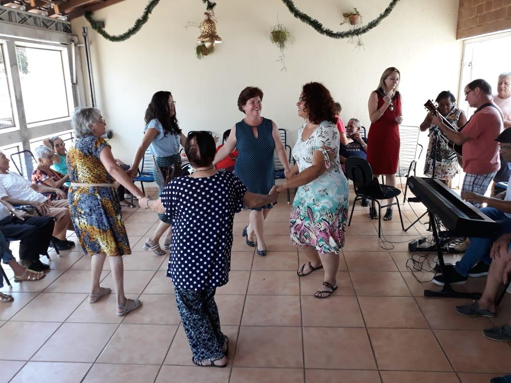 A festa de confraternização teve um almoço feito pelos funcionários, além de bingo, dança, e brindes confeccionados durante o ano pelos idosos.