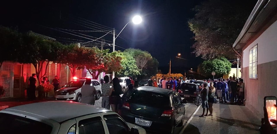 Momento da confusão na frente da casa do prefeito (Foto: Divulgação)