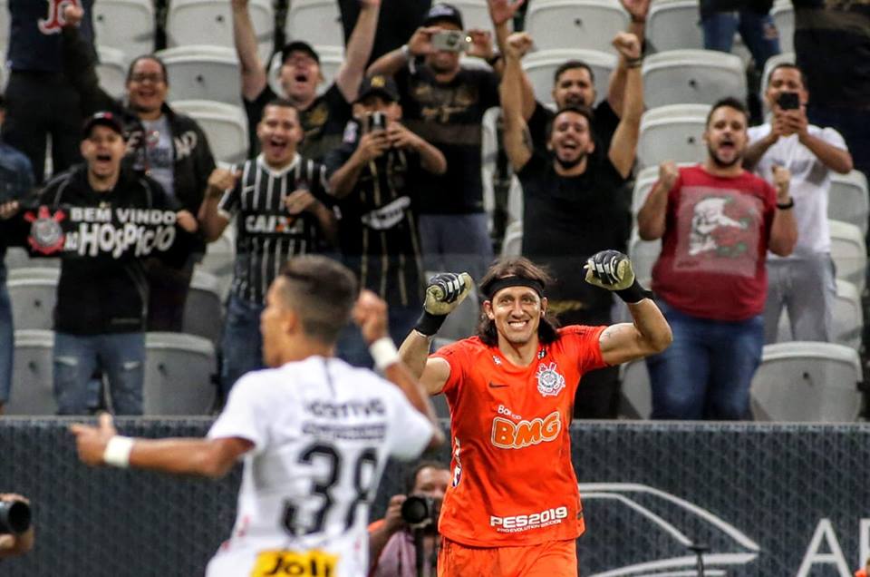 Comemoração de Cássio e Pedrinho, decisivos nas cobranças de pênalti contra a Ferroviária. (Foto: Divulgação)