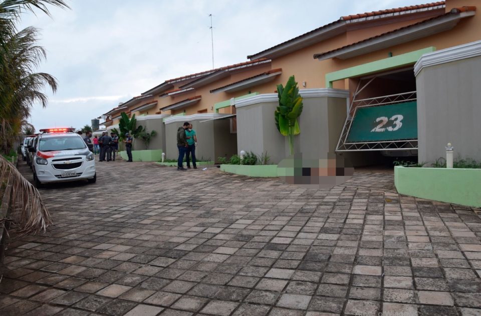 Cena do crime; Daniel caiu na área externa, em frente a um dos quartos, depois de levar quatro tiros, inclusive pelas costas (Foto: Marília Notícia)
