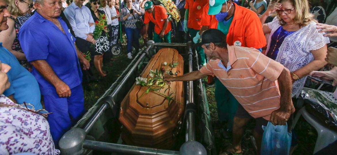 A família se mantinha em silêncio, de óculos escuros e flores vermelhas nas mãos. O pedido para que o sepultamento fosse restrito aos familiares foi alterado e fãs puderam se despedir do cantor e compositor.